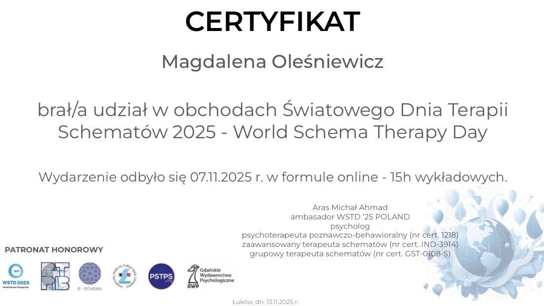 - Szkolenie z Terapii Schematów, DCP we Wrocławiu.